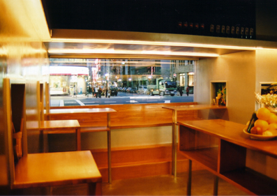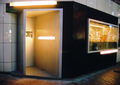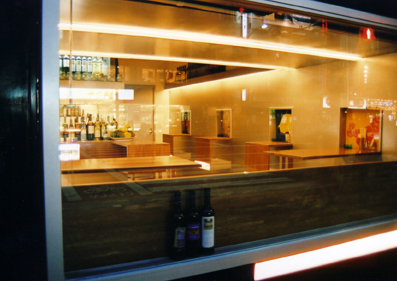 新橋駅至近の交差点角地に立地するワインと串かつを提供するスタンディングカフェ。