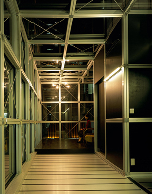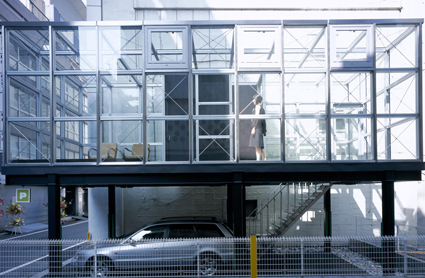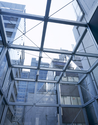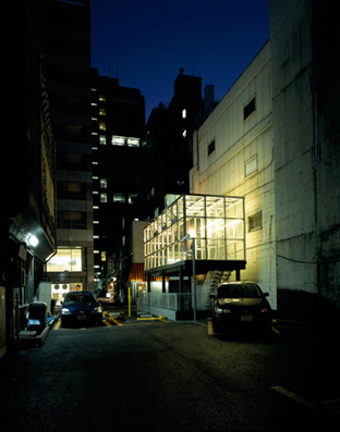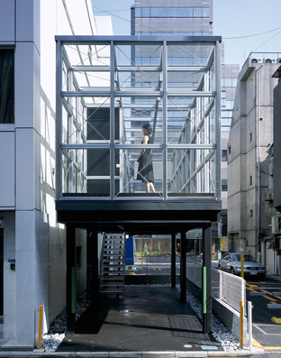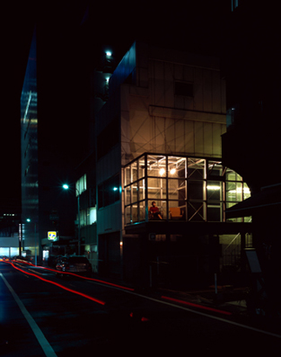 短期間で建物が解体・移設されるため1階は鉄骨造、2階をアルミフレーム構造としている。高密度な都心に浮かぶボックスは、隣接建物の外壁をインテリアとし、街路からの視認性を高め、入居テナントに宣伝効果をもたらすと同時に街並みの賑わい創出と新しい都心の風景を生み出すことが期待されている。